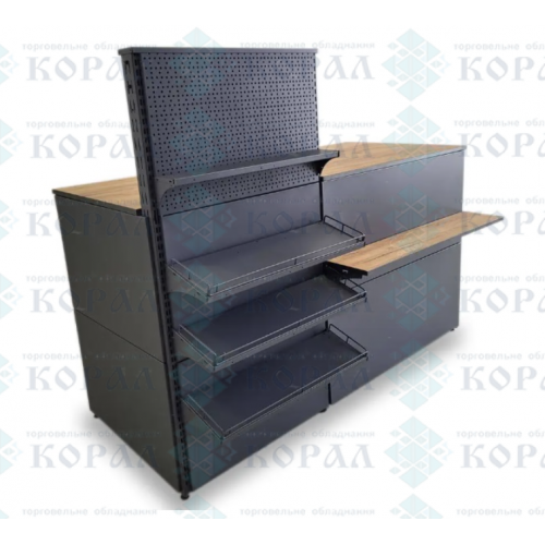Модульний касовий прилавок L1730 | Експрес каса з металевими та ДСП полицями
