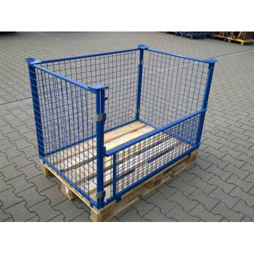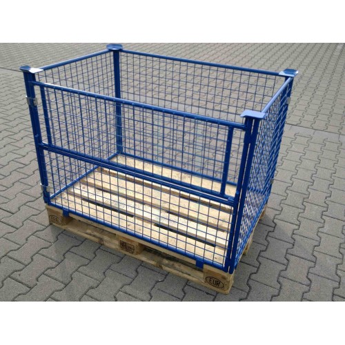 Ограждение устанавливается на стандартный европоддон (1200×800 мм), превращая его в жесткий стальной бокс. Благодаря уменьшенному размеру ячейки вес изделия составляет 25 кг, что делает конструкцию более прочной и устойчивой к деформациям.